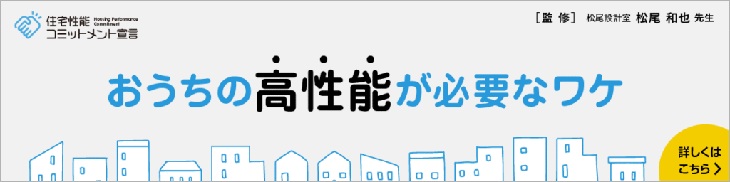 樋渡建設は、全棟で温熱計算・気密測定を行い、「高耐震・高断熱・高気密」の住まいづくりを宣言する「住宅性能コミットメント」に参加しています。