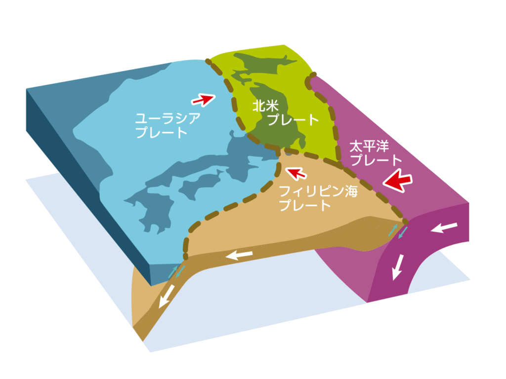 地震のメカニズムは「プレートテクトニクス」といって地球の表面を覆う十数枚のプレートが、それぞれ異なる方向に移動することで、地震や火山活動、造山運動などの地質現象を引き起こすとされています。この世界に十数枚しかないそのプレートの内、日本には4枚ものプレート境界があるんです。また、震度6〜7の大きな地震が日本で起きる割合は世界の10%に及ぶレベルです。それらを地球規模で見たときにちっぽけな日本の中で、地域ごとに『地震が来ない』というのは誤解で、どの地域でもいつでも起こる可能性があります。地域の特性に関わらず地震対策は重要なのです。