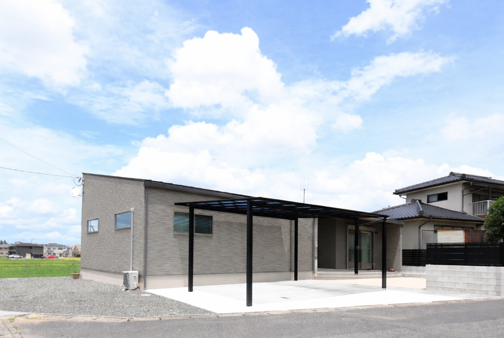 シンプルモダンな平屋住宅、広々としたカーポートが暮らしにゆとりをプラス