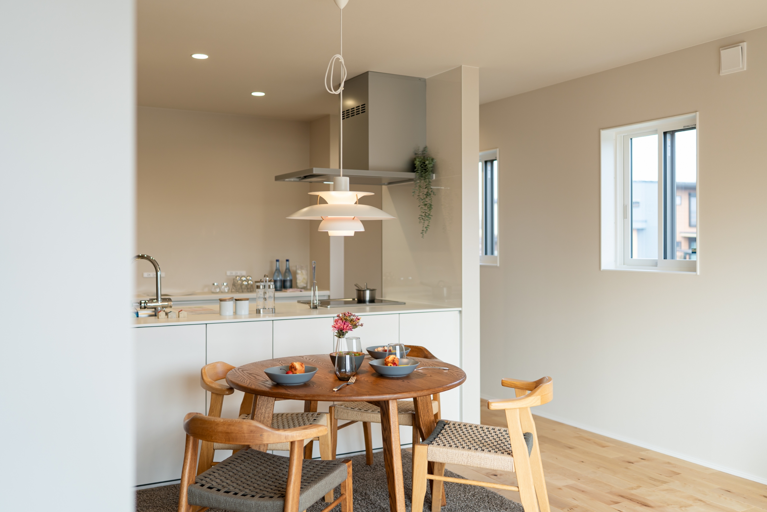 キッチンから食卓までつながる、心地よいダイニングスペース。