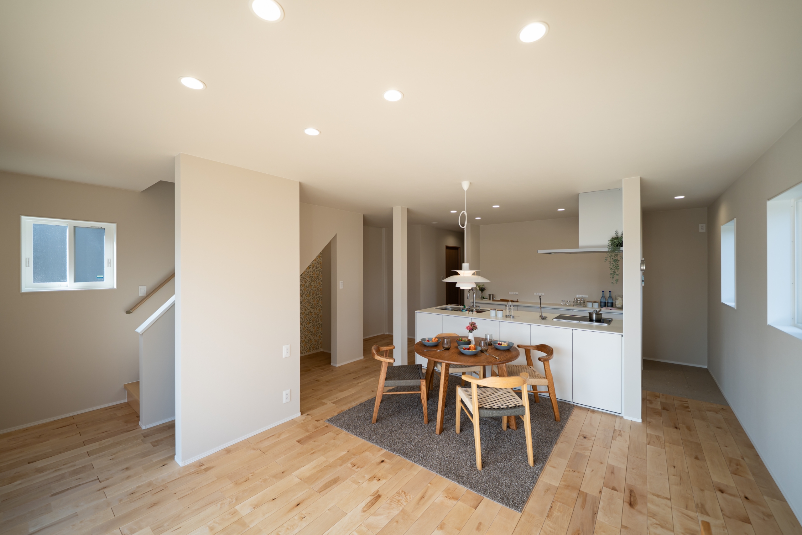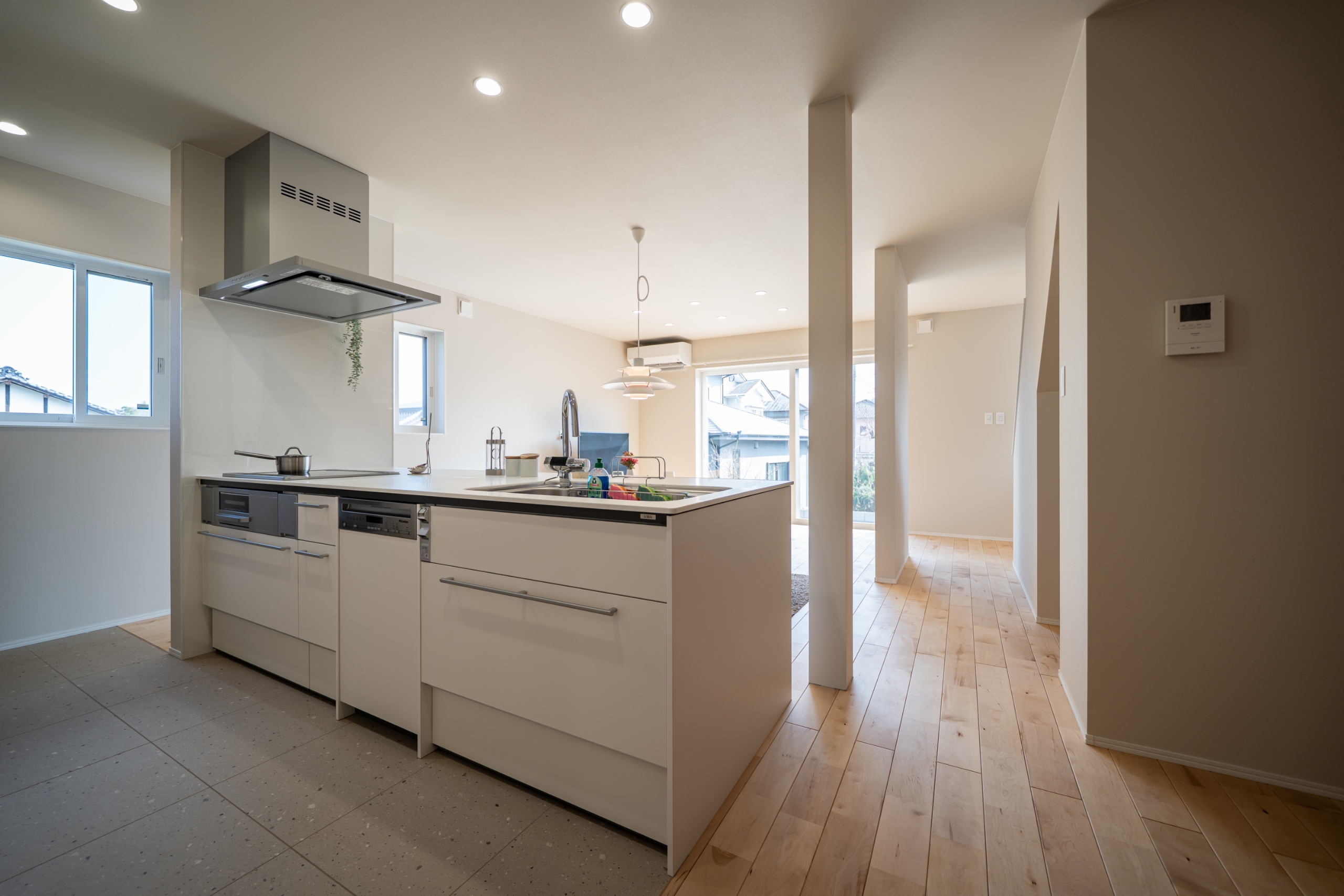 明るく開放的なLDK。家族が自然と集まる暮らしの中心に。