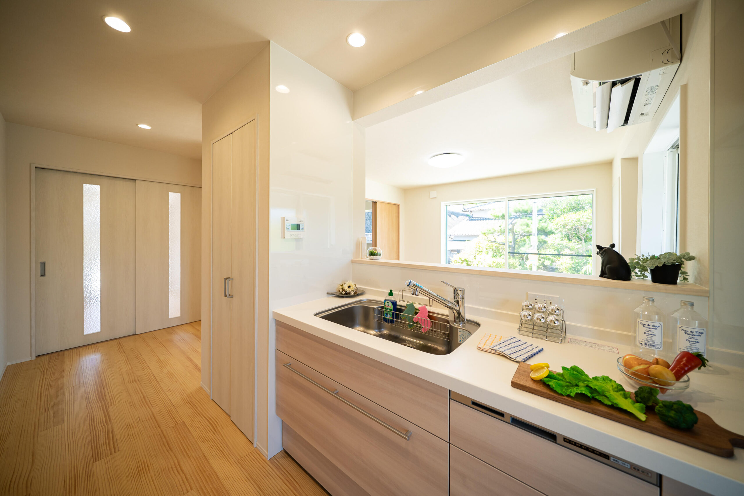 室内には無垢材を用いて明るいナチュラルな雰囲気に。建具も白を基調とした明るく、まるで新築のような住まいに生まれ変わりました。