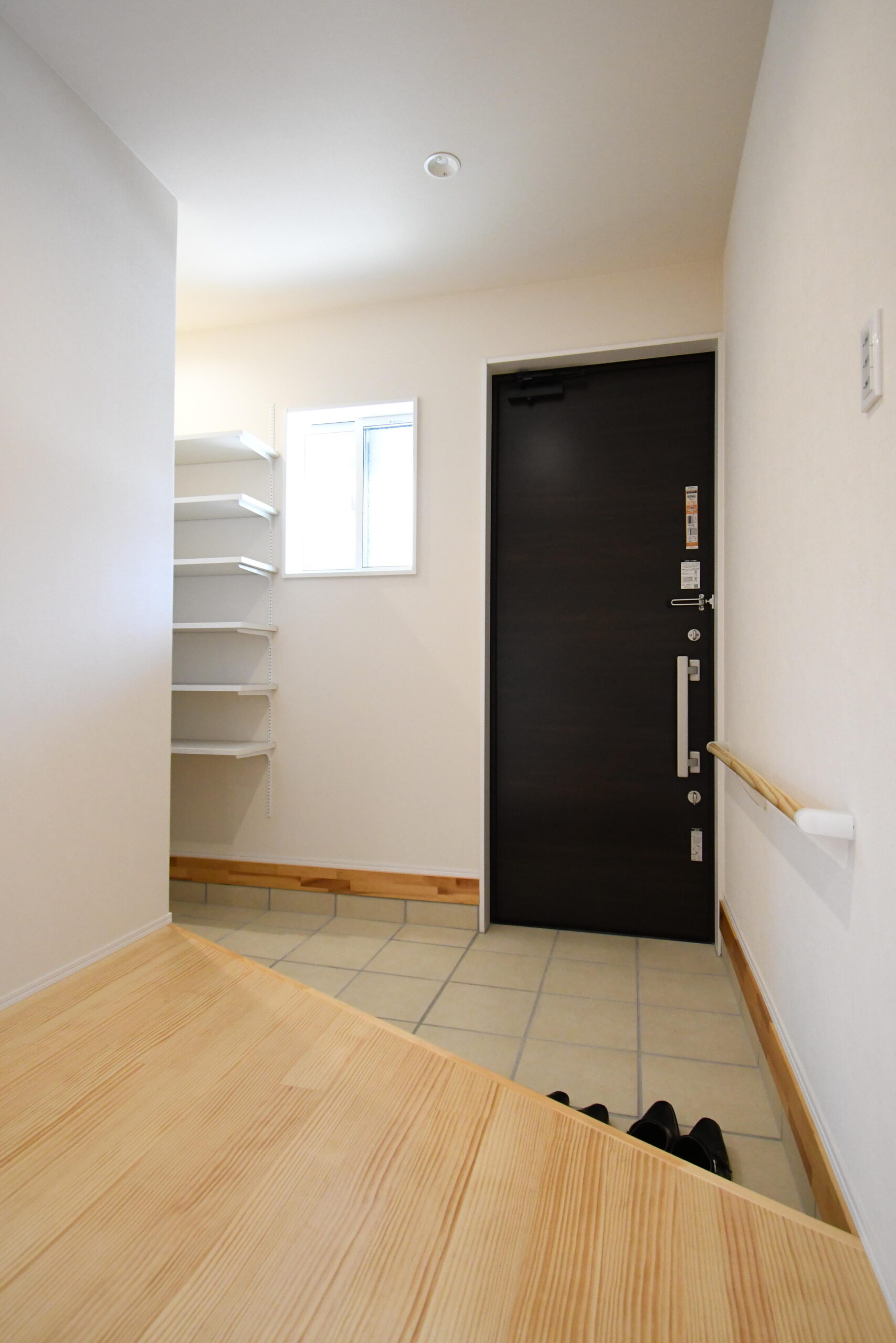 大きな広い玄関は手すりも設置してご両親様には安全で使いやすくなりました。