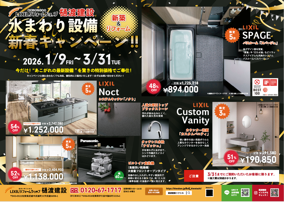 水まわり設備新春キャンペーン!(新築&リフォーム)
