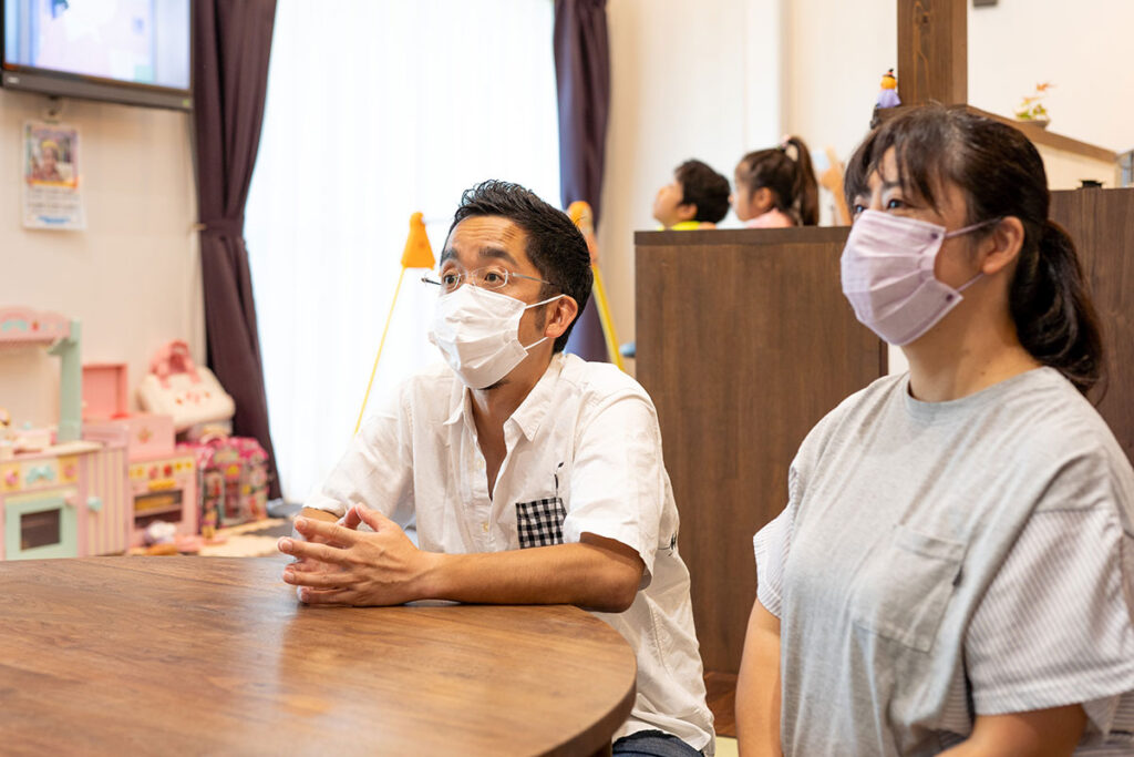 施主様:家を建てる話は7~9年前からしていました。私たちは教員なんですけど、以前は島に勤めていて、そこを出る年にどこに住もうか?長女をどこの小学校にやろうか?と考えた時に、ちょうど移住者向けのアパート一戸建てが建つという話があり、応募したら当たったので、初めはそこに住んで、新築に向けてまずは土地を探すことからやっていきました。