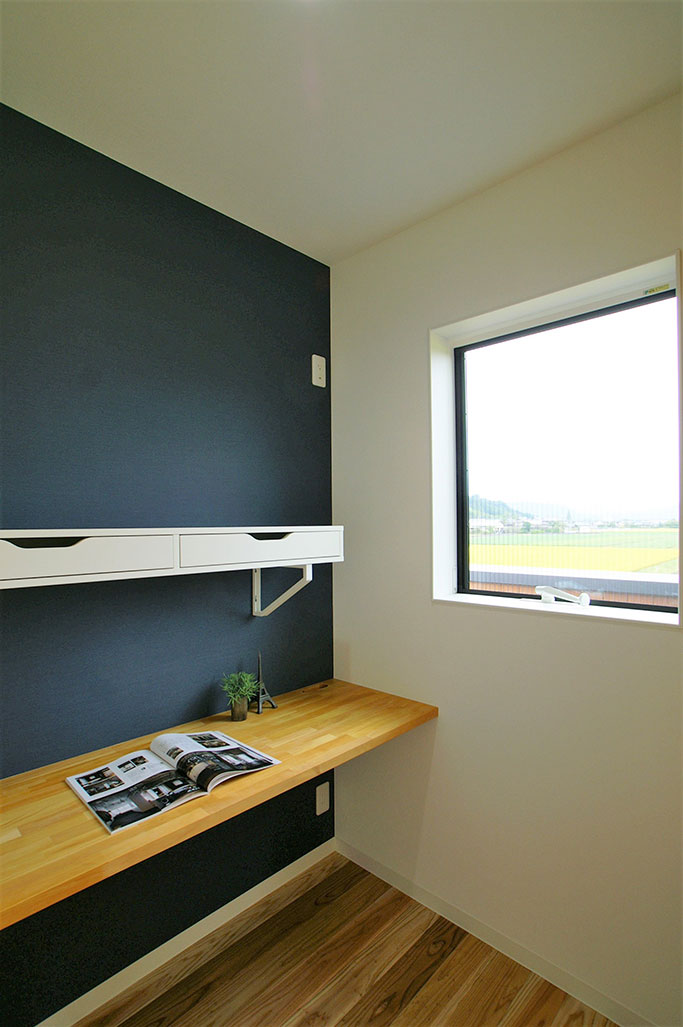 旧 Bellfleur 03 樋渡建設からの提案 Bellfleur-M2Typeのアレンジプラン。家事や子育てがしやすく使い勝手のよい配置でランドリールームをはじめ収納も充実。小上がりの畳コーナーには壁にニッチを設け本棚として子供の絵本を置いたり、畳下には引出の収納も配置。2Fにはフリースペースや書斎があり楽しく過ごせます。インテリアは明るい北欧スタイルでコーディネートされています。
