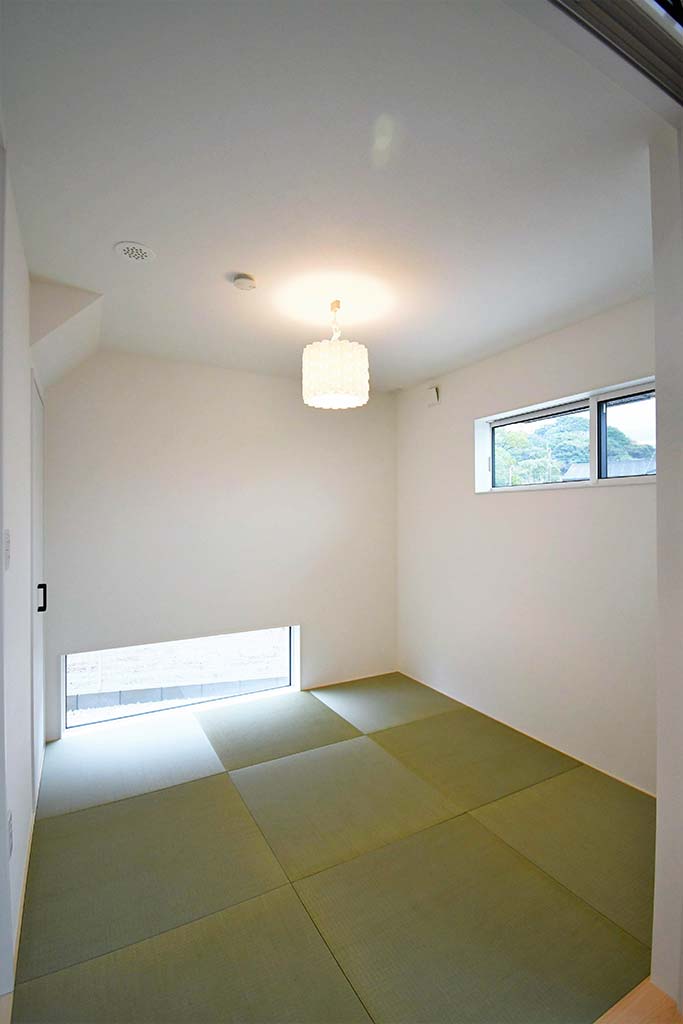 白と黒のコントラストを利かせてすっきりとした外観。内部はお施主様のこだわりが詰ったかわいらしいお家になりました。高性能断熱パネル仕様、HEMS、トリプルガラスの高断熱サッシ、制震装置で性能の高い、快適なお家です。省令準耐火の建物です。
