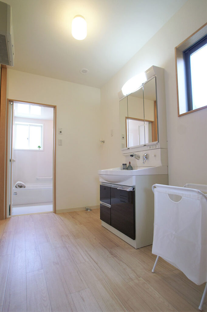 立花の家 03 樋渡建設からの提案 若いご夫婦、子育て住宅。家事が少しでも楽しくできるように家事動線を まとめたり、サービステラスをつけて便利に 使いやすく設計しました。キッチンの脇にスタディーカウンターを設け 子供の勉強やPCスペースとしても使えるよう 考えました。
