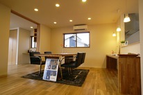 大坪の家 02 樋渡建設からの提案 大勢でワイワイと楽しく過ごすことが大好きな ご家族。仲良し家族でだんらんができる住宅です。南側からの光をたくさん取り込み、明るく快適 に、収納も充実しています。広いリビングや庭でたくさんのお友達を招いて も十分なスペースで、思い存分楽しめるように オープンな住宅に仕上がりました。